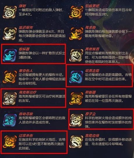 “过度杀伤”“原子尘”可以让你大招具有放烟花的震撼效果,实现真正的狂轰滥炸。“粉碎器”提升主要输出技能Q的伤害量,“海克斯治疗”能够让E有加血效果,当队内无娑娜奶妈时,带上这个可以让你临时顶一下。“铤而走险”较考验手速,多练习,毕竟提升4倍伤害呢。