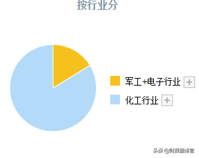 该企业化工行业收入占比为83.71%,军工+电子行业收入占比为16.29%。