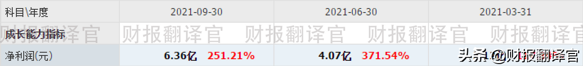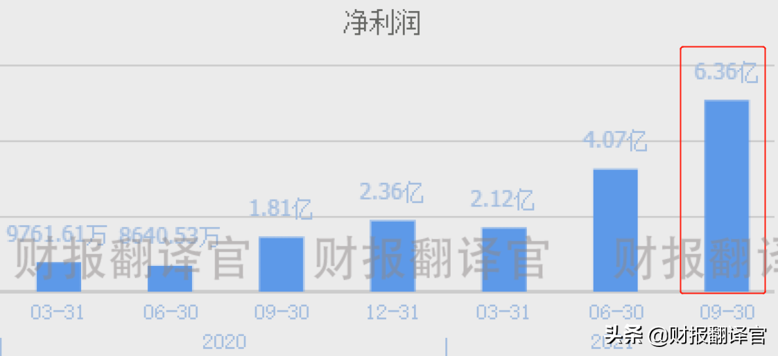 2021年第三季度,公司的净利润为6.36亿元,同比增长了251%。
