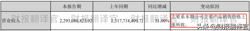 在公司的财报中明确指出,营业收入的增加以及销售毛利率的提高,主要是因为电子和化工产品的价格出现大幅度上涨所致。