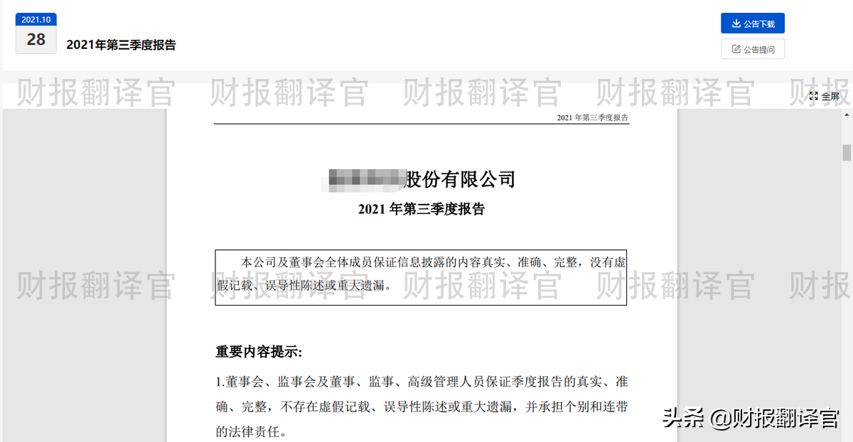 以下内容和财务数据均源自该公司2021年第三季度财报中,第9页的合并资产负债表,和第11页的合并利润表,并没有任何个人观点。