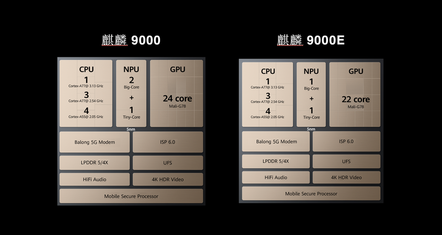 参数方面,麒麟9000芯片CPU方面依旧是基于上代ARMA77核心架构,采用的是一颗主频为3.13GHz的A77高频核心、三颗主频为2.54GHz的A77高性能核心以及四颗主频为2.0...