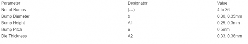 表 1. Maxim 和 Dallas Semiconductor UCSP (晶片级封装)的标称尺寸 7