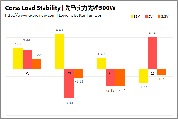 先马实力先锋500W交叉负载表现