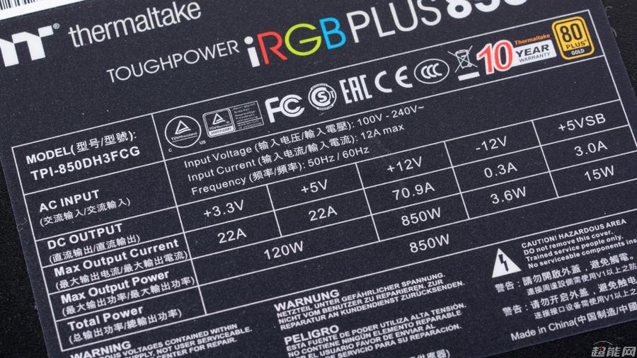 图片源自Tt ToughPower iRGB Plus 850W电源
