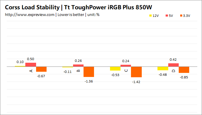Tt ToughPower iRGB Plus 850W电源交叉负载表现