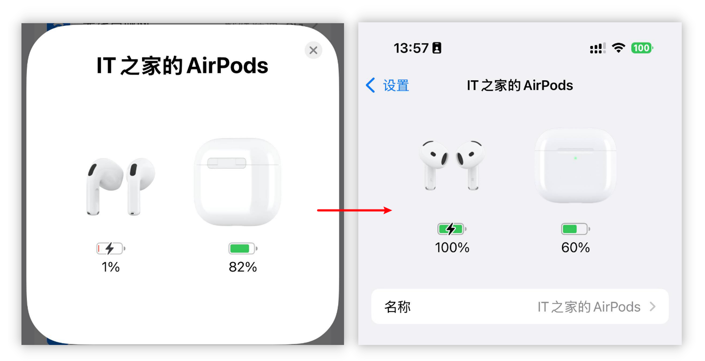 而耳机盒将两只耳机的电量重新充满,电量由 82% 下降至了 60% ,折合耳机盒可为耳机充电约 4-5 次,也略好于官方 20 小时总续航的标注。
