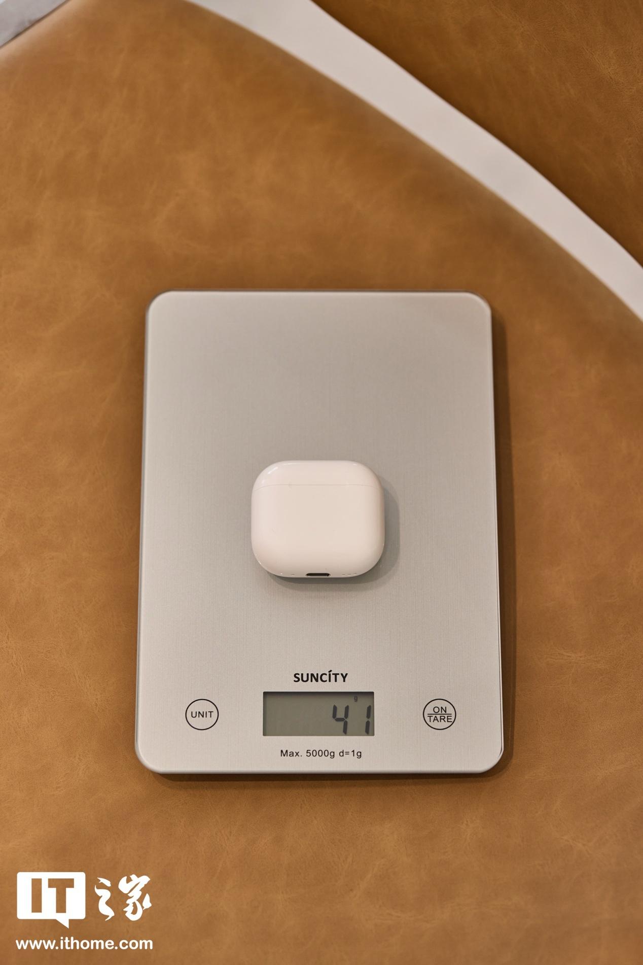 耳机本体的人体工学设计相比前代也有细微的调整,单只重量 4.3g,耳机盒重量 41g。
