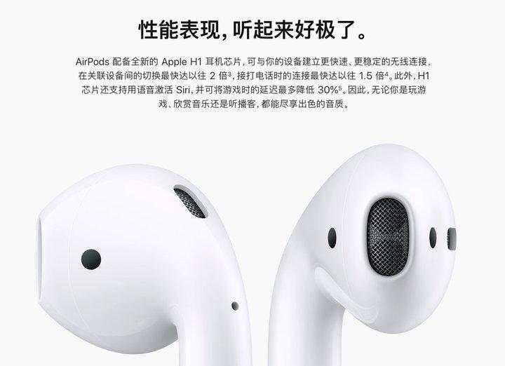 和初代 AirPods 搭载的 W1 芯片不同,新上架的 AirPods 均搭载了名为 H1 的芯片,这也是苹果首次为耳机产品研发的芯片组。