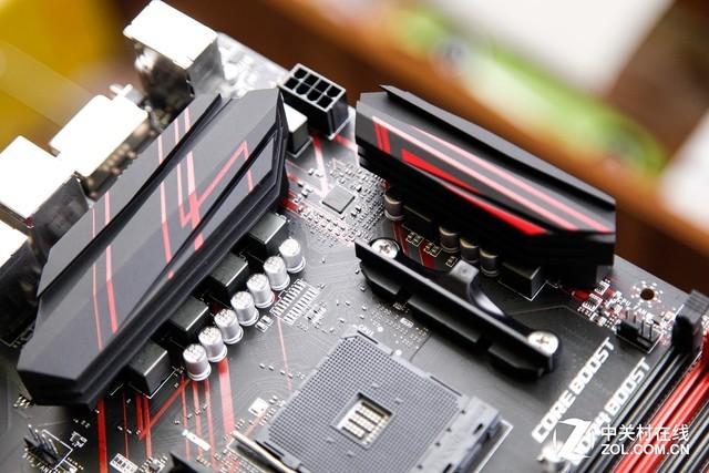同时技嘉还给供电模块配备了高效直触式热管与导热垫加密集散热鳍片的VRM散热方案,有效降低供电电路的工作温度,还有MASTER系列独有的金属散热背板装甲,防护性和散热效果都达到了旗舰主板的标准。