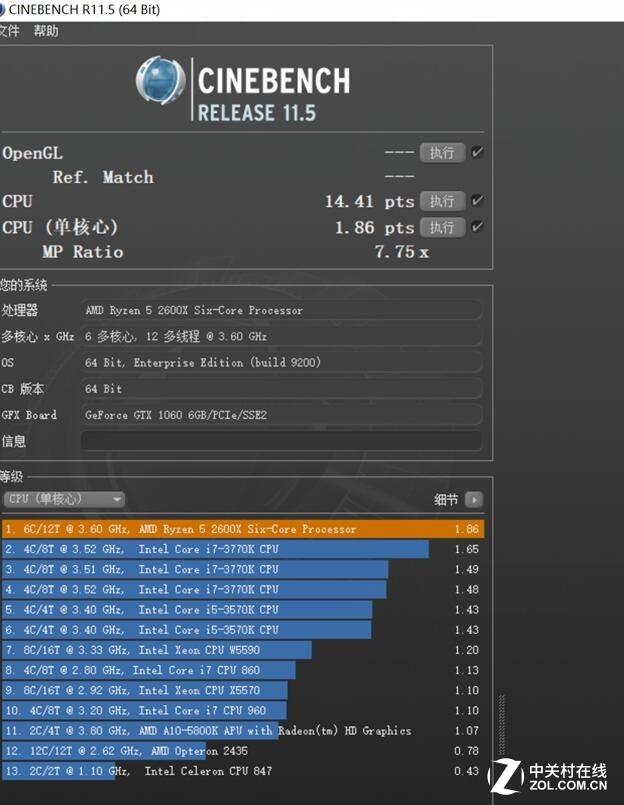 CINEBENCH R11.5测试成绩