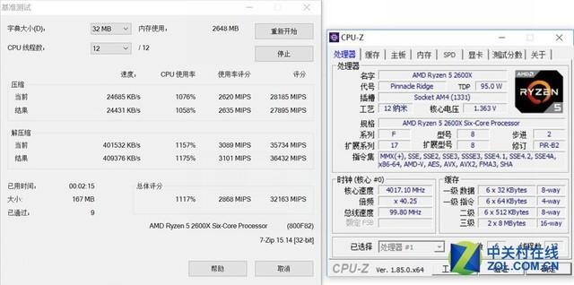 首先上场的是7-ZIP,这款软件中配备了专门的性能测试插件,我们就借助这个插件来测试性能水平。