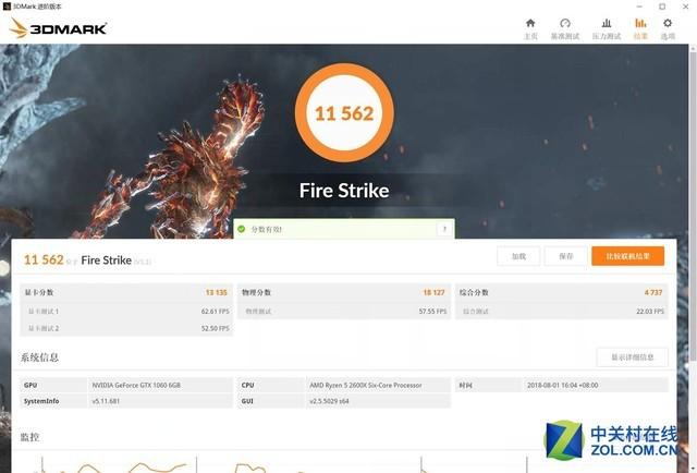 测试完CPU性能之后我们再来测试一下图形能力,这次的平台上我们选择了GTX1060 6GB版作为评测用显卡,这款定位中高端的产品是目前市场上最热门的型号之一。