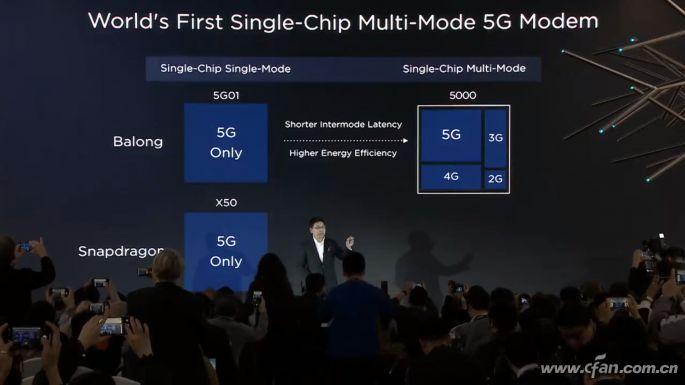 巴龙5000是华为在2019年1月才正式发布的基带芯片,它基于和麒麟980相同的7nm工艺设计,也是有史以来第一款兼容SA(5G独立组网)和NSA(5G非独立组网)双架构的5G基带芯片,能够在单芯片内实现2G、3G、4G和5G多种网络制式,这意味着搭载这颗基带芯片的手机无论在4G阶段、还是非独立组网的NSA阶段、甚至到运营商切换到SA组网时都可以完美兼容网络而无需换机,堪称5G时代的“全网通”。