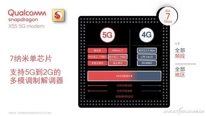 当然,高通也不可能让华为独美于前。就在巴龙5000发布不久,高通也同时祭出了全新的骁龙X55基带芯片。据悉,骁龙X55同样基于台积电7nm工艺设计,同时兼容SA和NSA组网,并实现从2G到5G网络“通吃”的能力。