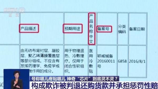 二位老人共同诉讼代理人 高先生: 还举了一些例子说,把这冷敷贴放在酒杯下面,酒瓶下面,可以使酒变得更醇香,包括水可以变成所谓的小分子水,反正就是一些比较神奇的功效。