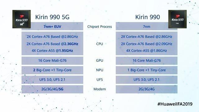 麒麟990 5G与麒麟990 对比