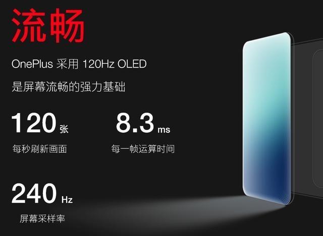此前在一加媒体沟通会上,一加研发的120Hz刷新率屏幕亮相。这块高刷新率屏幕的亮点就是拥有高达120Hz的刷新率以及240Hz的触控采样率,从一加7 Pro和一加7T系列的90Hz流体屏我们就知道,更高的刷新率和触控采样率意味着更流畅操作体验。
