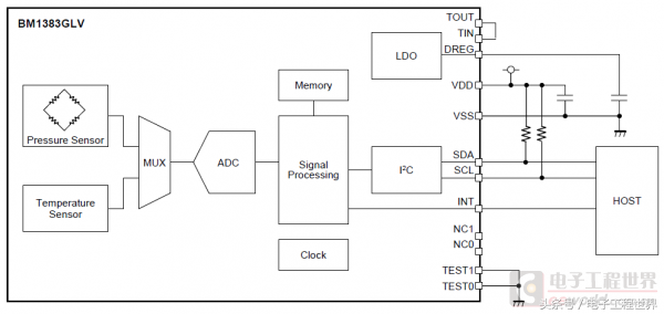 套件里的PS/ALS传感器型号为BM1383GLV,是一个压电电阻式气压传感器。