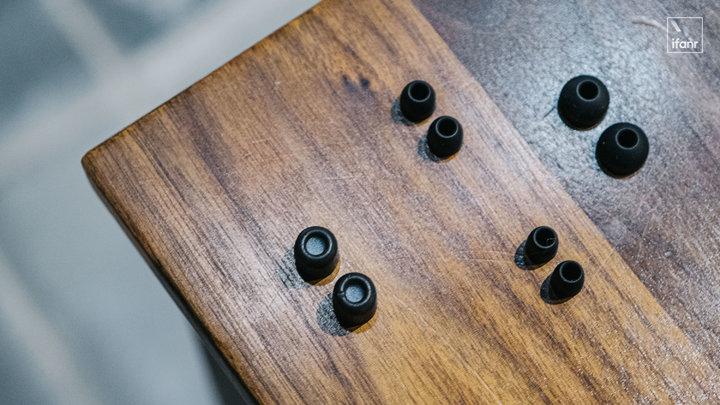 这里,Beoplay EQ 提供了胶塞和记忆海绵塞两种不同材质的耳塞,胶塞有 L、M、S 三种尺寸,记忆海绵就有 M 号一个尺寸,用户可以按照自己的佩戴需求自行选择。