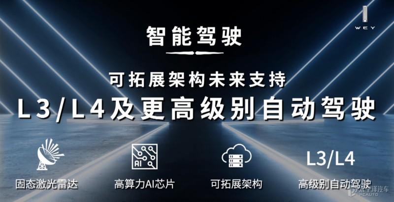 WEY与华为、高通等科技企业合作,搭载高通8155芯片,并且与德国伊比欧公司联合开发的激光雷达,能够有效弥补目前通用的毫米波雷达的感知缺陷。