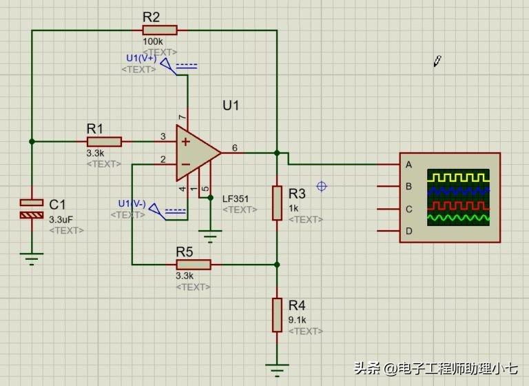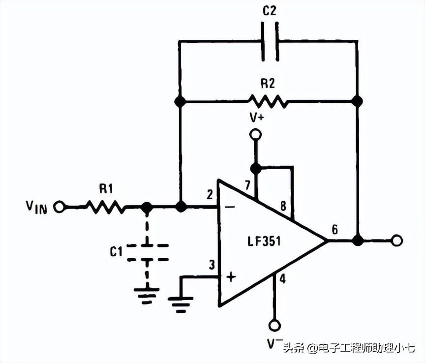 LF351 IC最简单的应用之一是高输入阻抗反相放大器 ,如图所示: