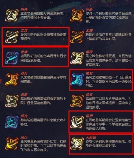 在实践中,亚索的快乐之源E技能增强效果并不明显,“雷厉”加强大招时的无敌效果,并放出吹风,配合“流浪”和“聚风”,可瞬间打出巨大的AOE伤害和控制。“天际线”提升伤害距离和减少大招CD。不要点“风行”,不好用。