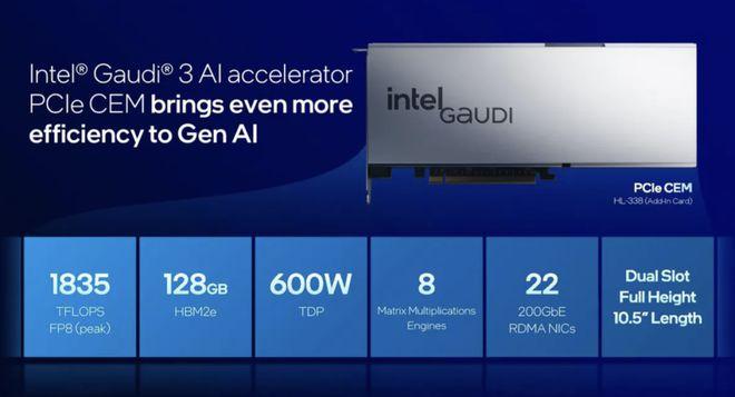基于英特尔Gaudi 3的系统将于今年第四季度从戴尔、HPE和超微全面上市,戴尔和超微的系统将于10月出货,超微的设备将于12月出货。