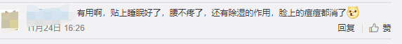 自从用过之后,睡眠好了、腰不疼了,还有除湿的作用,脸上的痘痘都消了。