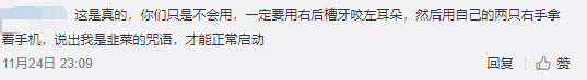 一定要用右后槽牙咬左耳朵,然后用自己的两只右手拿着手机,说出我是韭菜的咒语。