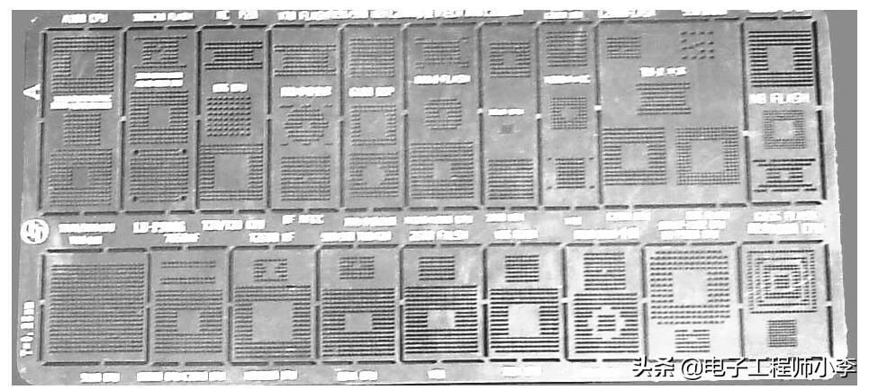 目前市面上销售的植锡板大体分为两类:一类是把所有型号都做在一起的大的连体植锡板,另一类是每种芯片一块的小植锡板。这两种植锡板的使用方式不一样。
