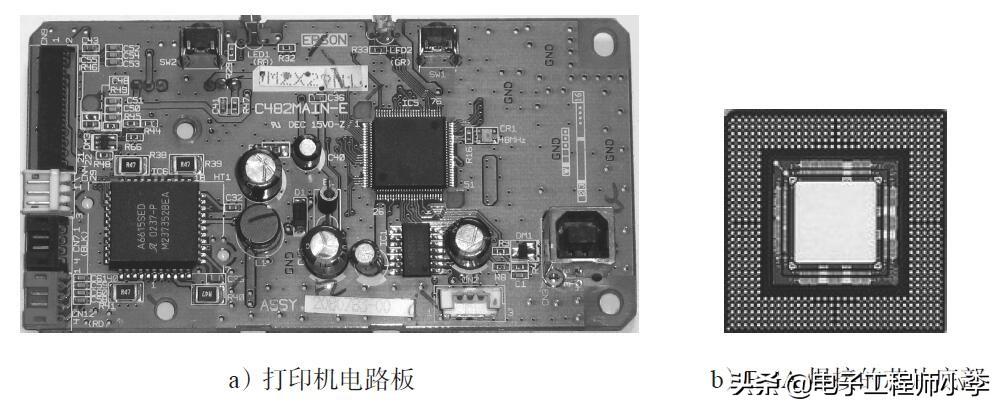 图1-57 打印机电路板中采用BGA技术焊接的芯片