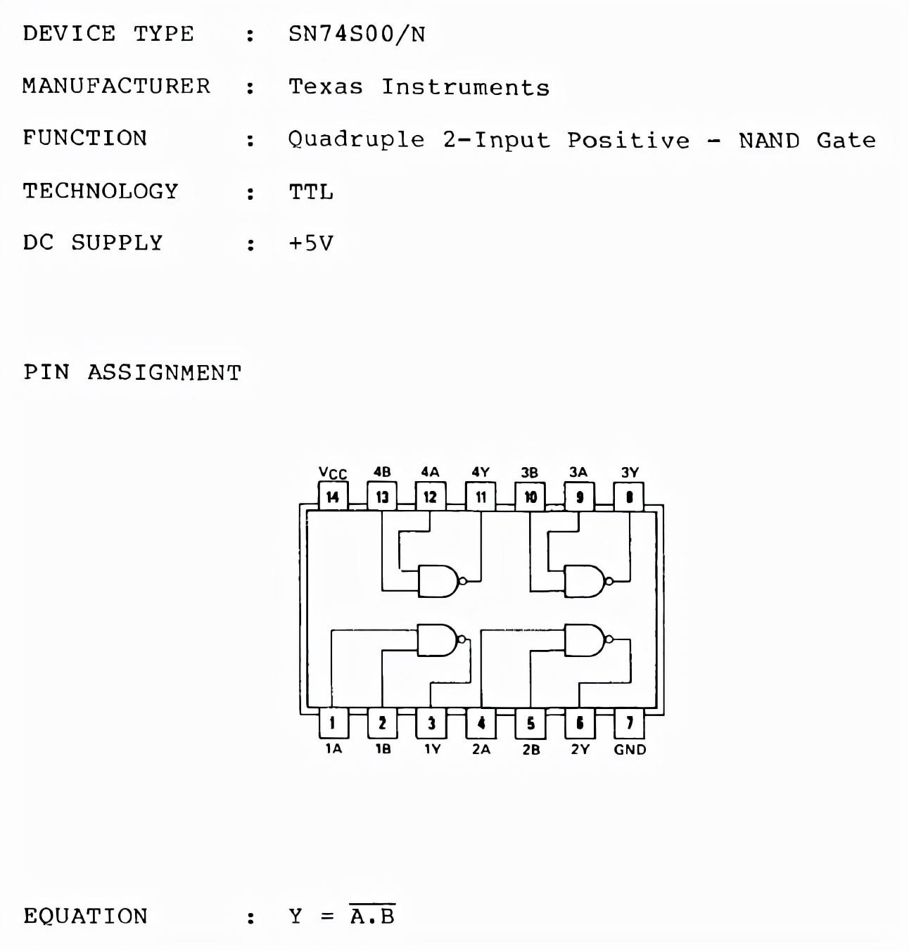 1、集成电路型号:SN74S00/N如下图所示: