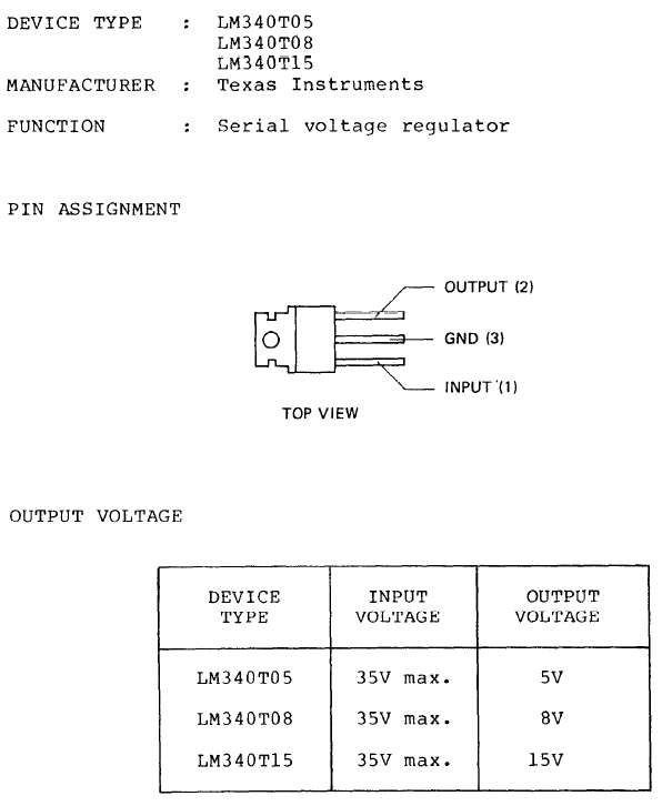 8、晶体管型号:LM340T05、LM340T08、LM340T15、如下图所示: