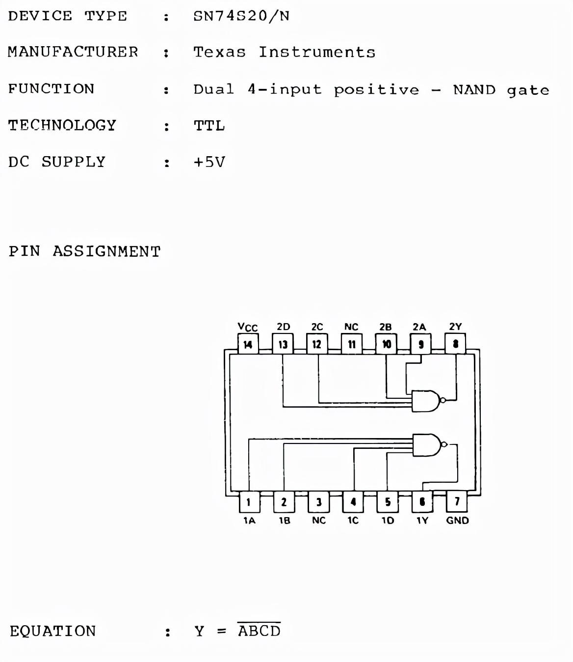 4、集成电路型号:SN74S20/N如下图所示: