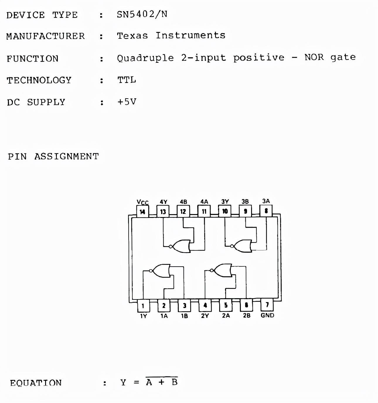 2、集成电路型号:SN5402/N如下图所示: