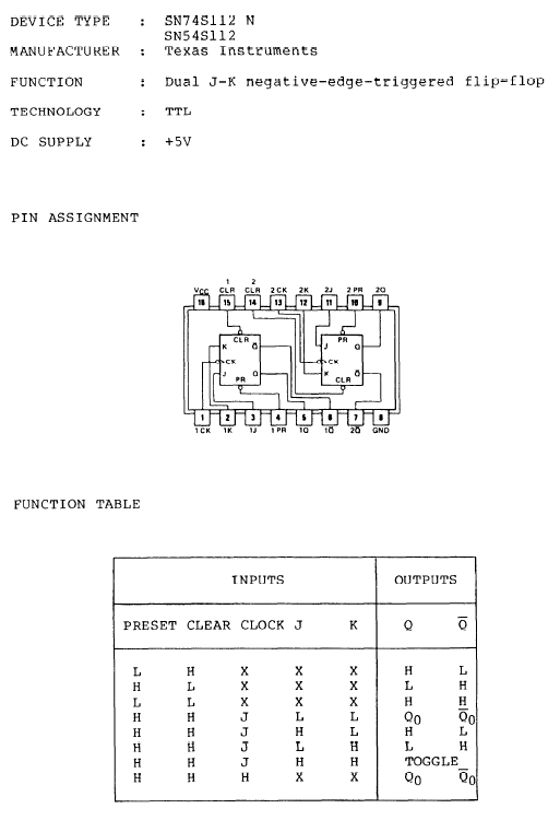 74112 TTL 带预置清除负触发双J-K触发器