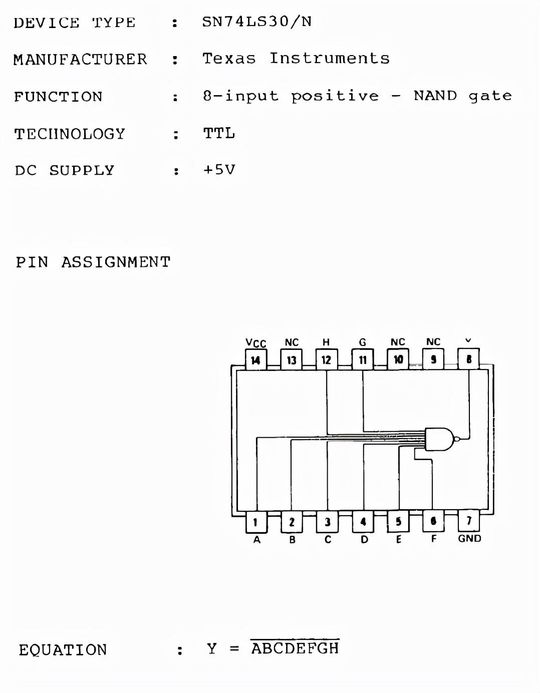 5、集成电路型号:SN74LS30/N如下图所示: