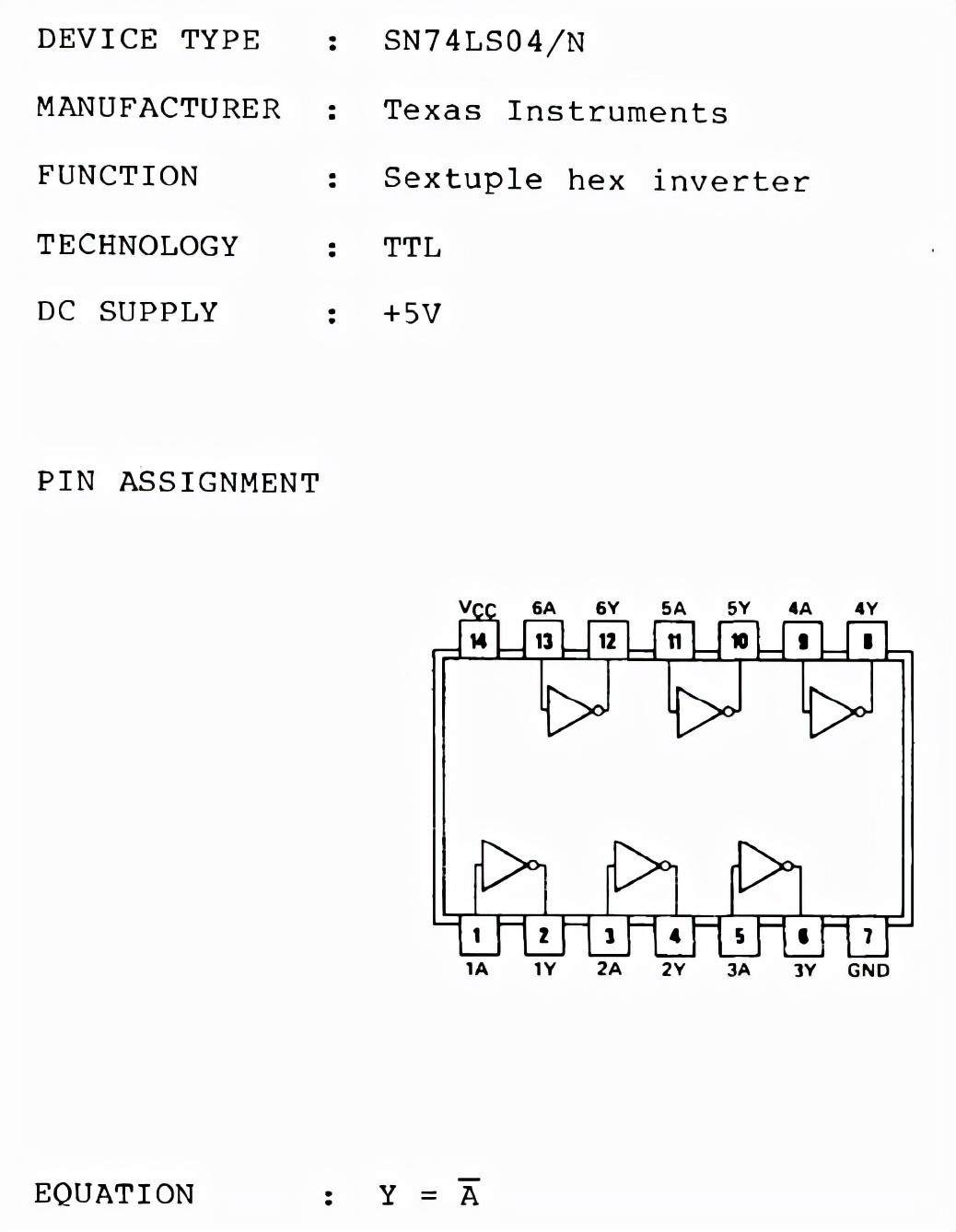 3、集成电路型号:SN74LS04/N如下图所示:
