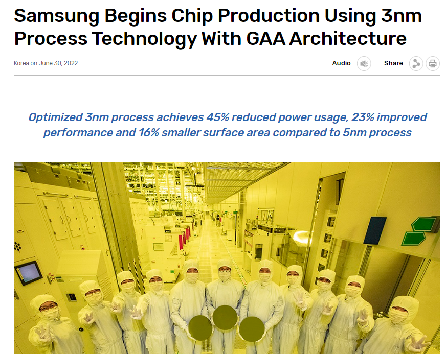 拔得头筹!三星宣布3纳米芯片正式开始量产