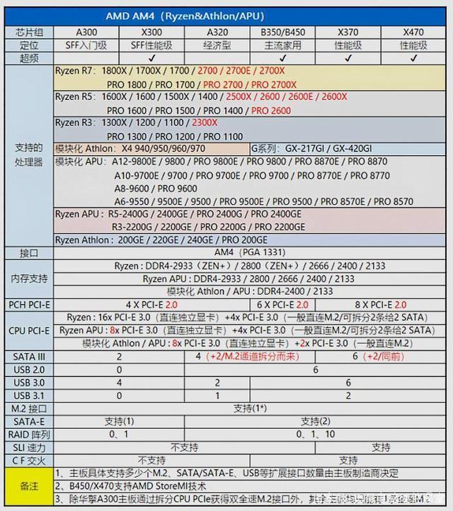 下面是AMD和intel部分芯片组的各项性能指标比较: