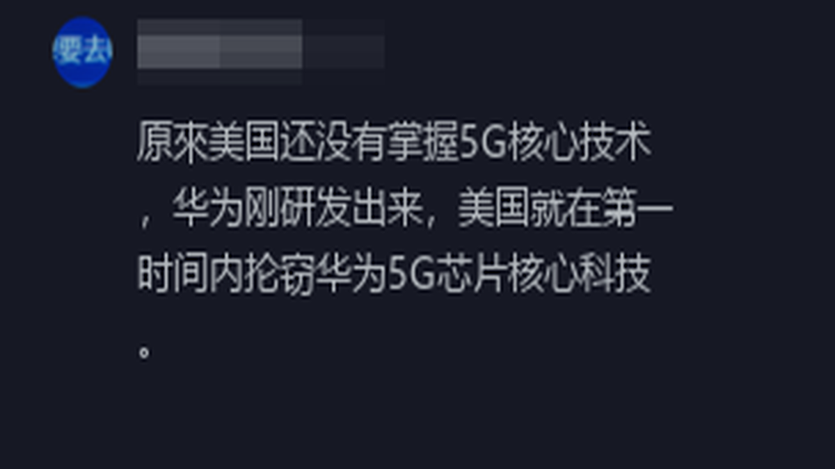 原來美国还没有掌握5G核心技术,华为刚研发出来,美国就在第一时间内抡窃华为5G芯片核心科技。这句评论直接指出了美国在技术上的落后与对华为成果的觊觎。