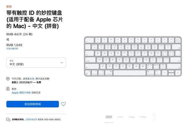 需要特别注意的是,新款带有Touch ID的妙控键盘仅与M1 Mac系列兼容,因此在M1 iMac之外的产品,消费者可以选择不带Touch ID的更新版本,价格也能便宜350元。