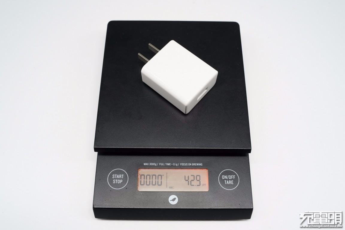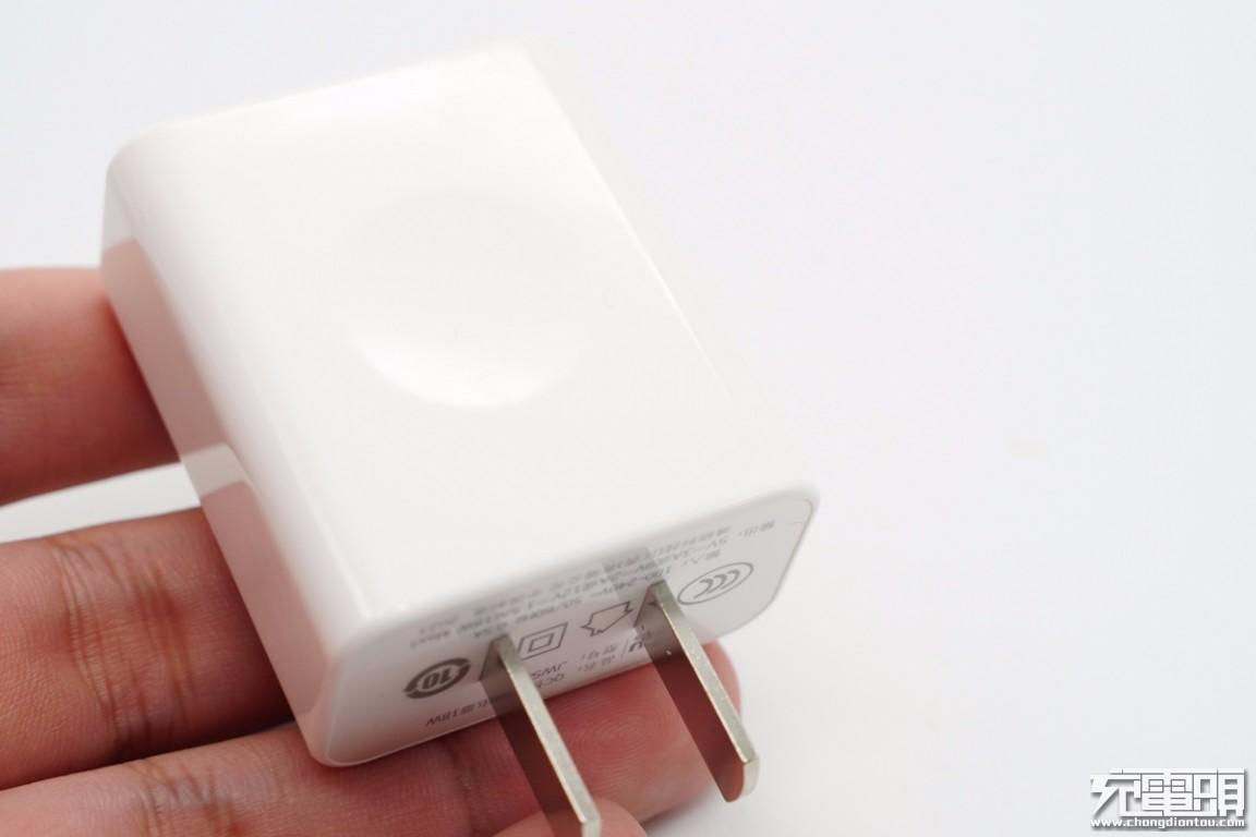 充电器采用PC阻燃材质白色外壳,表面亮面烤漆处理,边角过渡圆润,整体光滑洁白。