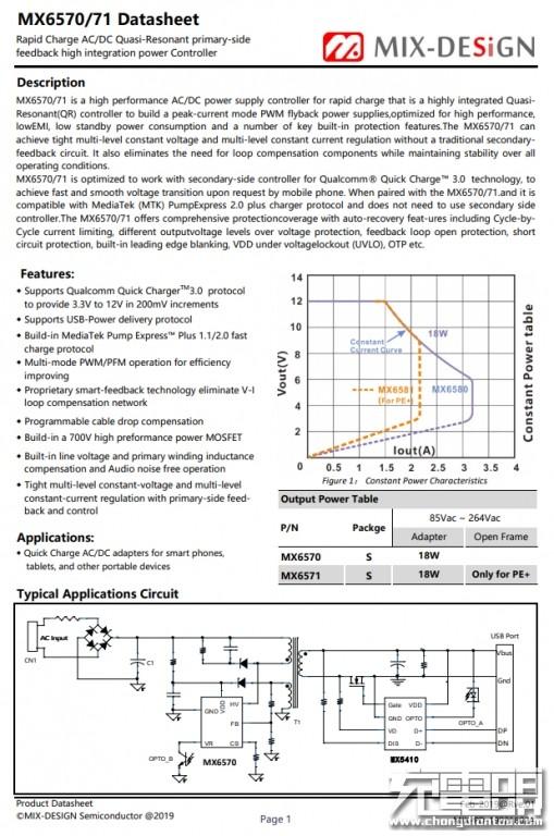 充电器用到的初级PWM芯片MX6570内置了控制器、高压MOS管等电路;次级芯片MX5461内置同步整流控制器、同步整流MOS、协议识别等电路,并且两颗芯片采用了美思迪赛半导体特有的数字控制系统及Smart-feedback技术,可以为产品提供更加优异的性能。在保证产品性能的前提下,这套高集成的快充方案在成本方面也具有极大的优势,这也将成为了目前市面上10W充电器升级成18W快充的最佳方案。