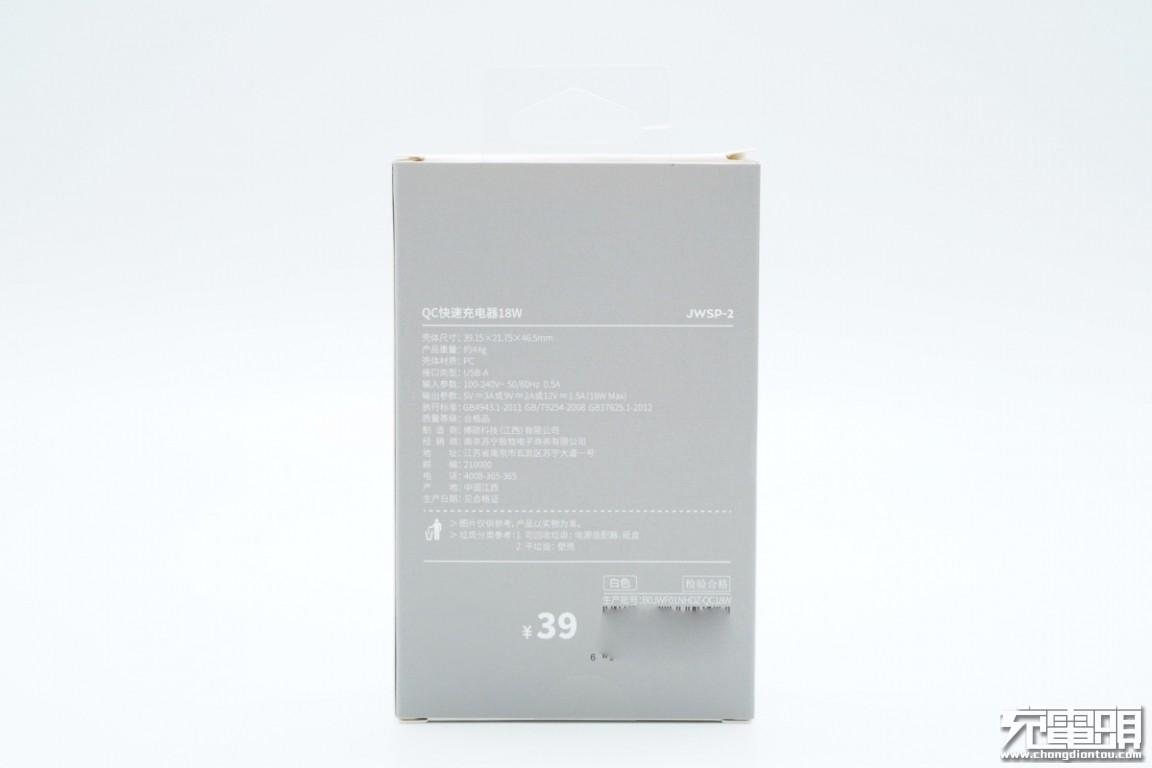 包装盒背面印有充电器的基本参数信息,售价39元。