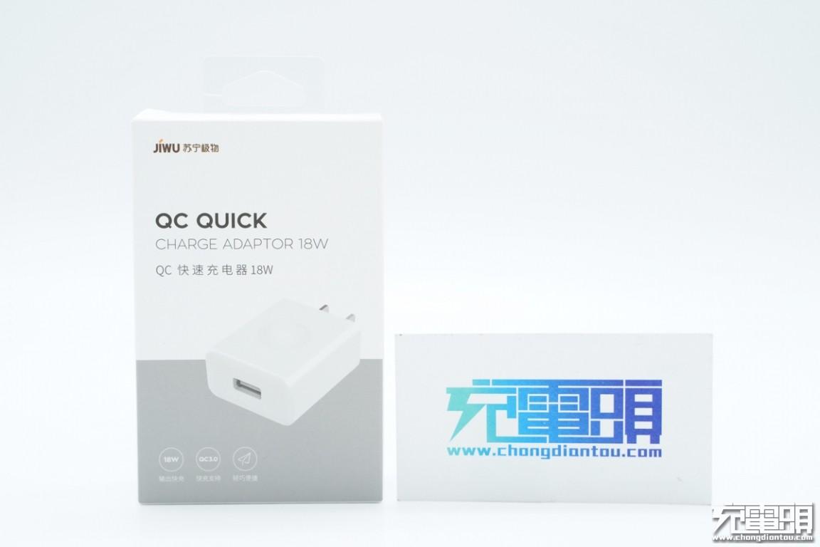 充电头网本次拿到的ODM品牌为立讯科技为苏宁极物定制的18W快充,整个产品采用灰白相间外包装,正面印有品牌、充电器外观以及产品卖点。