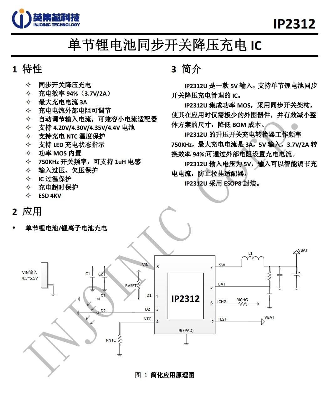 首先为大家介绍的是IP2312,这款充电芯片是一颗内置开关管的同步降压充电IC,支持单节锂电池充电,最大充电电流3A。