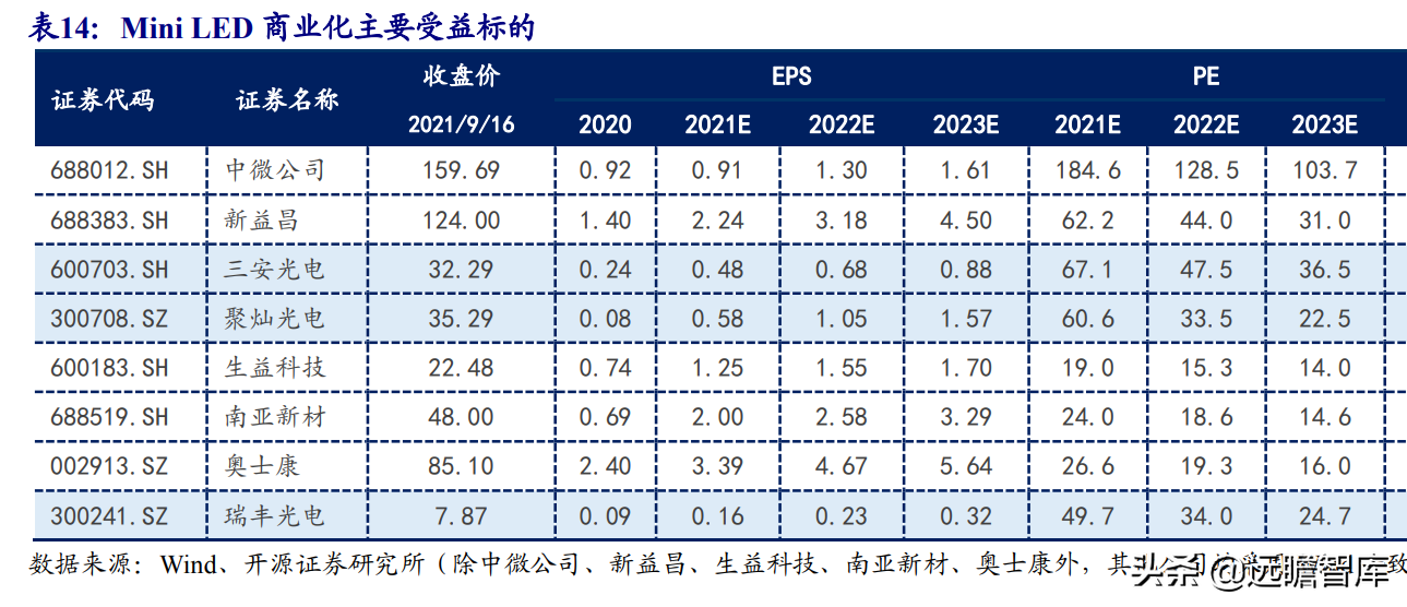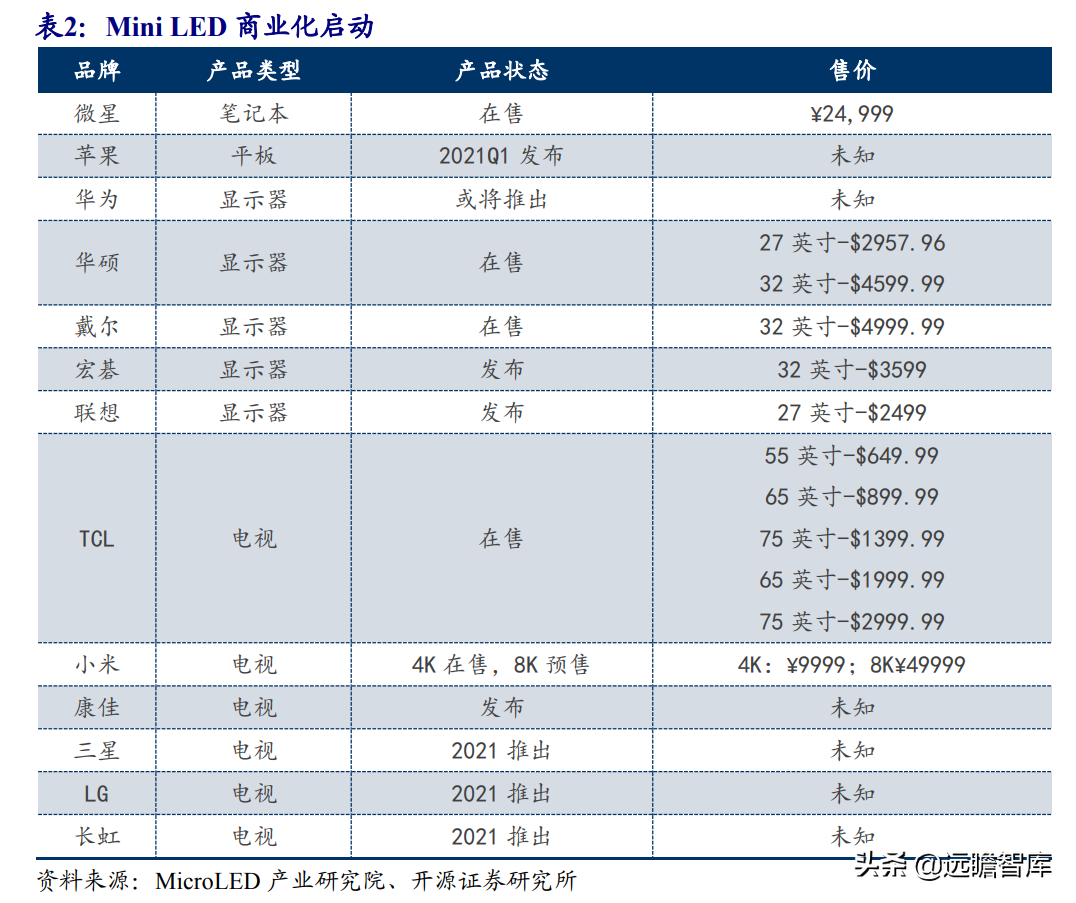 Mini LED 商业化的启动为整个产业链注入了全新活力,产业链相关公司将因此受益。