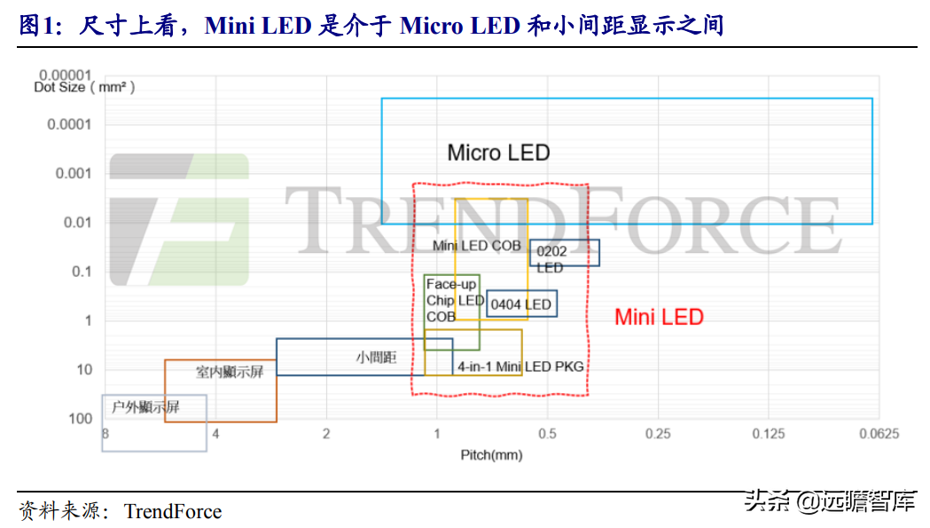 Mini LED又称次毫米发光二极管,是指采用数十微米级的LED晶体构成的显示屏,介于Micro LED和小间距显示之间。